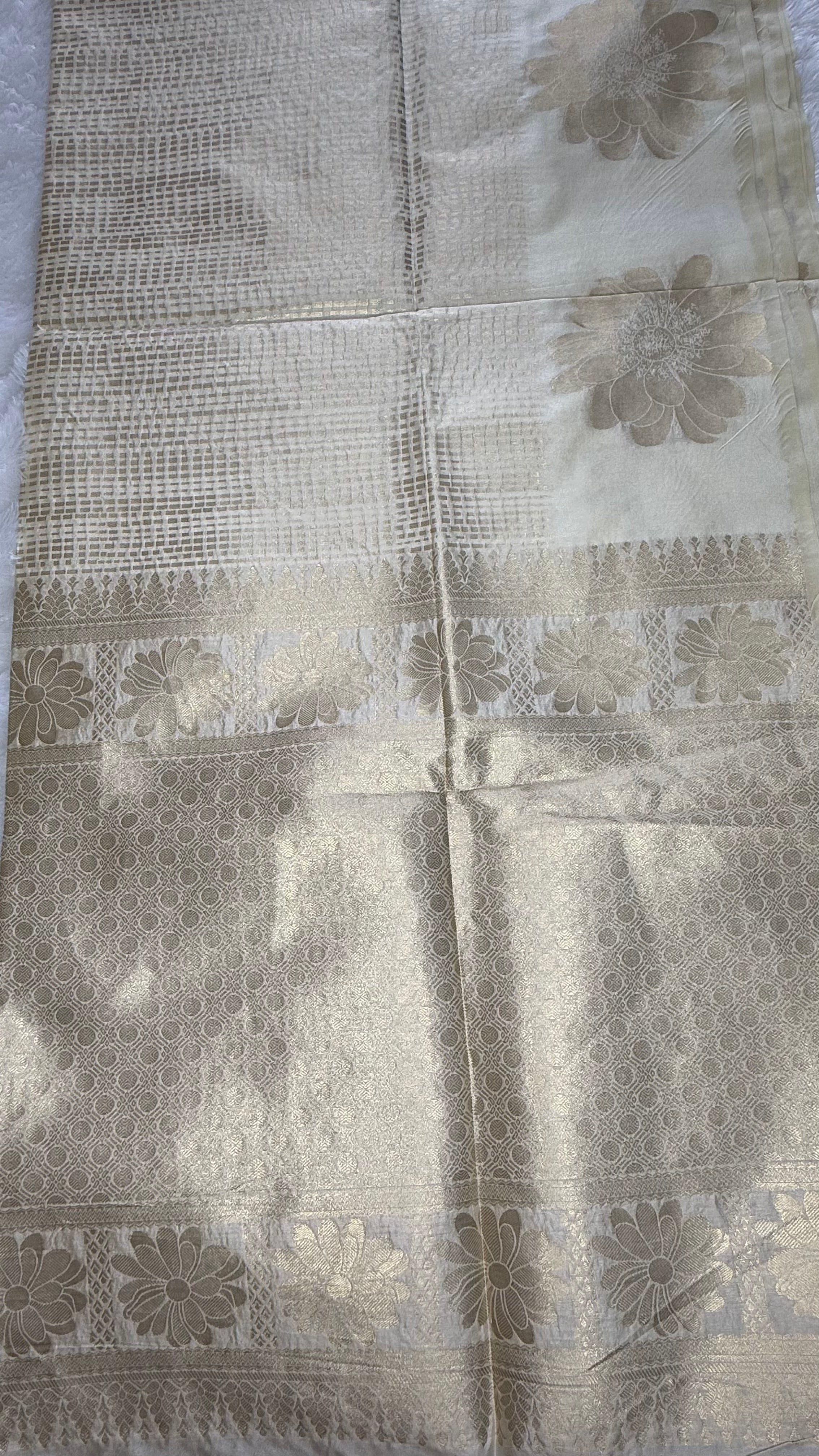 Traditional Cream and Gold Onam Saree