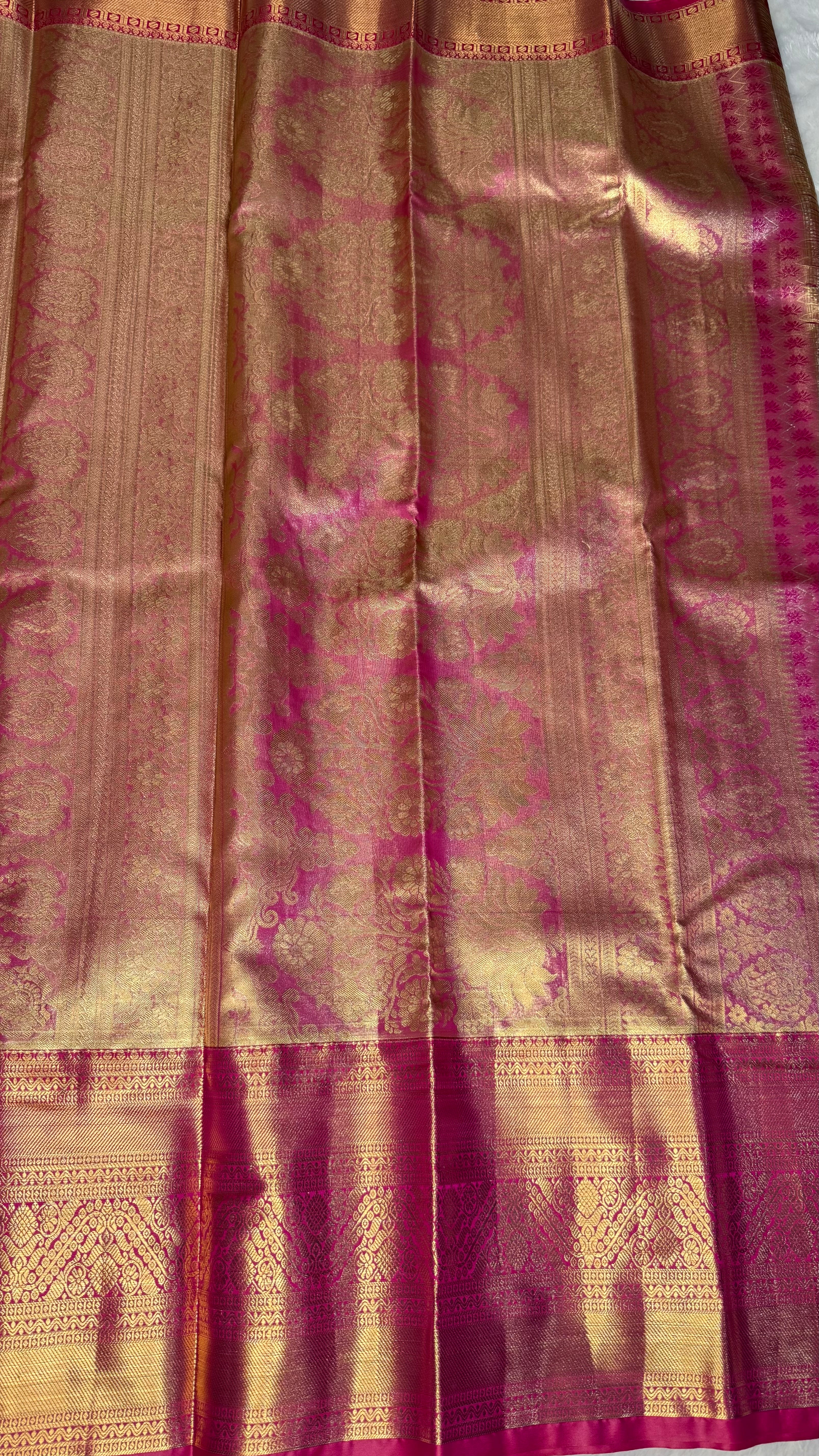 Tissue fabric with the majestic weave of Kanchivaram tradition.